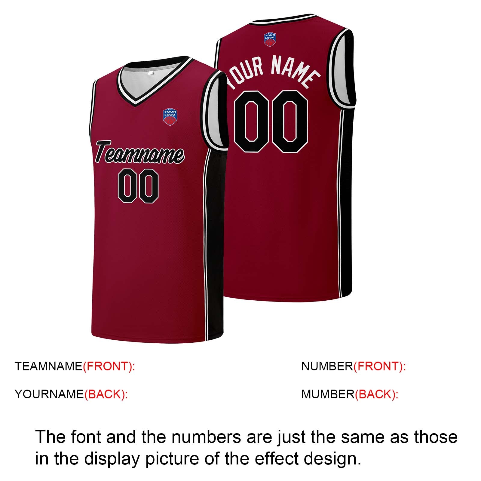 Custom basketball jersey shorts for men and women. Embroidered and printed name, number and logo Burgundy