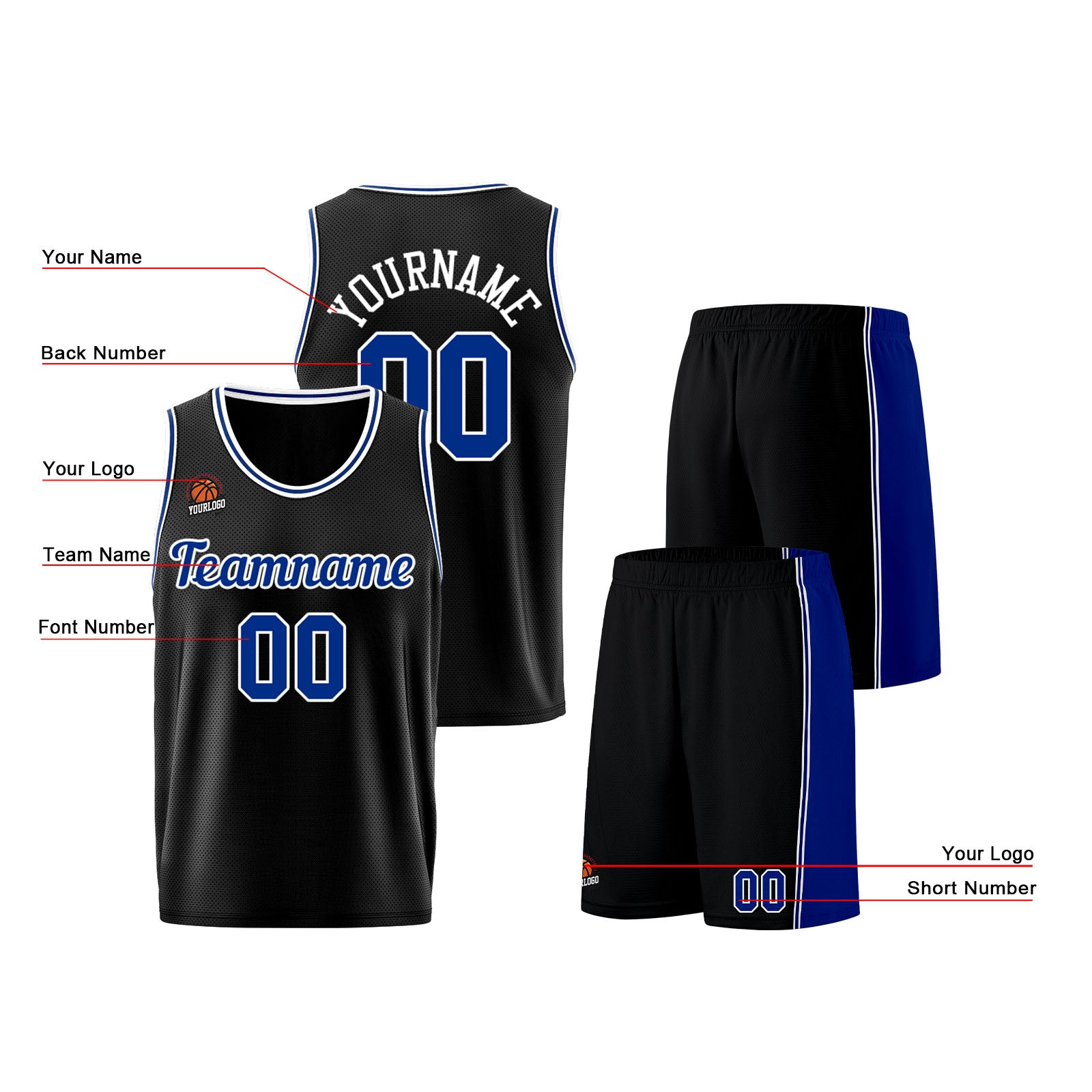 Custom Black-Royal Basketball Jersey for Men Women Adult Youth Stitched Name Number Logo