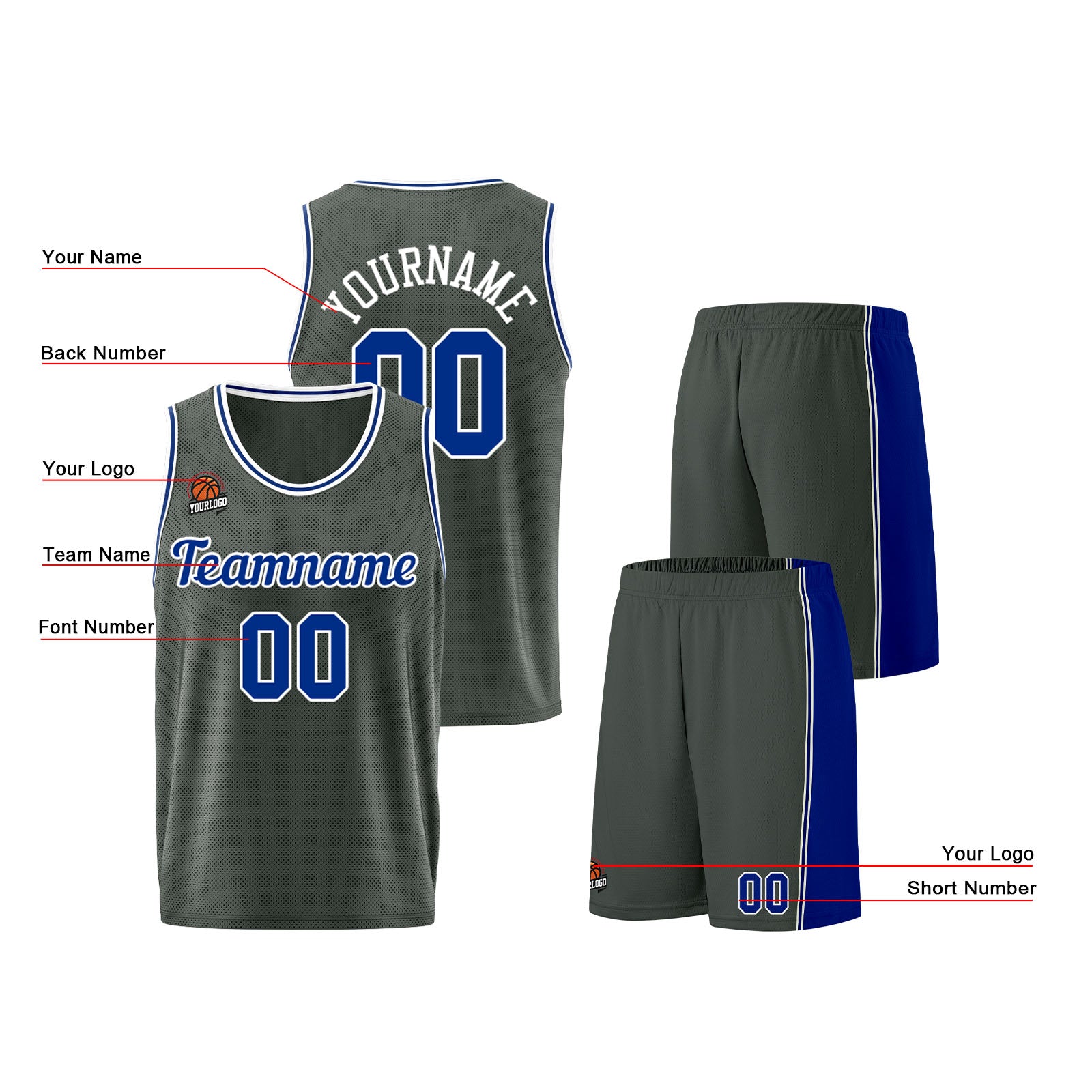 Custom Dark Gray-Royal Basketball Jersey for Men Women Adult Youth Stitched Name Number Logo