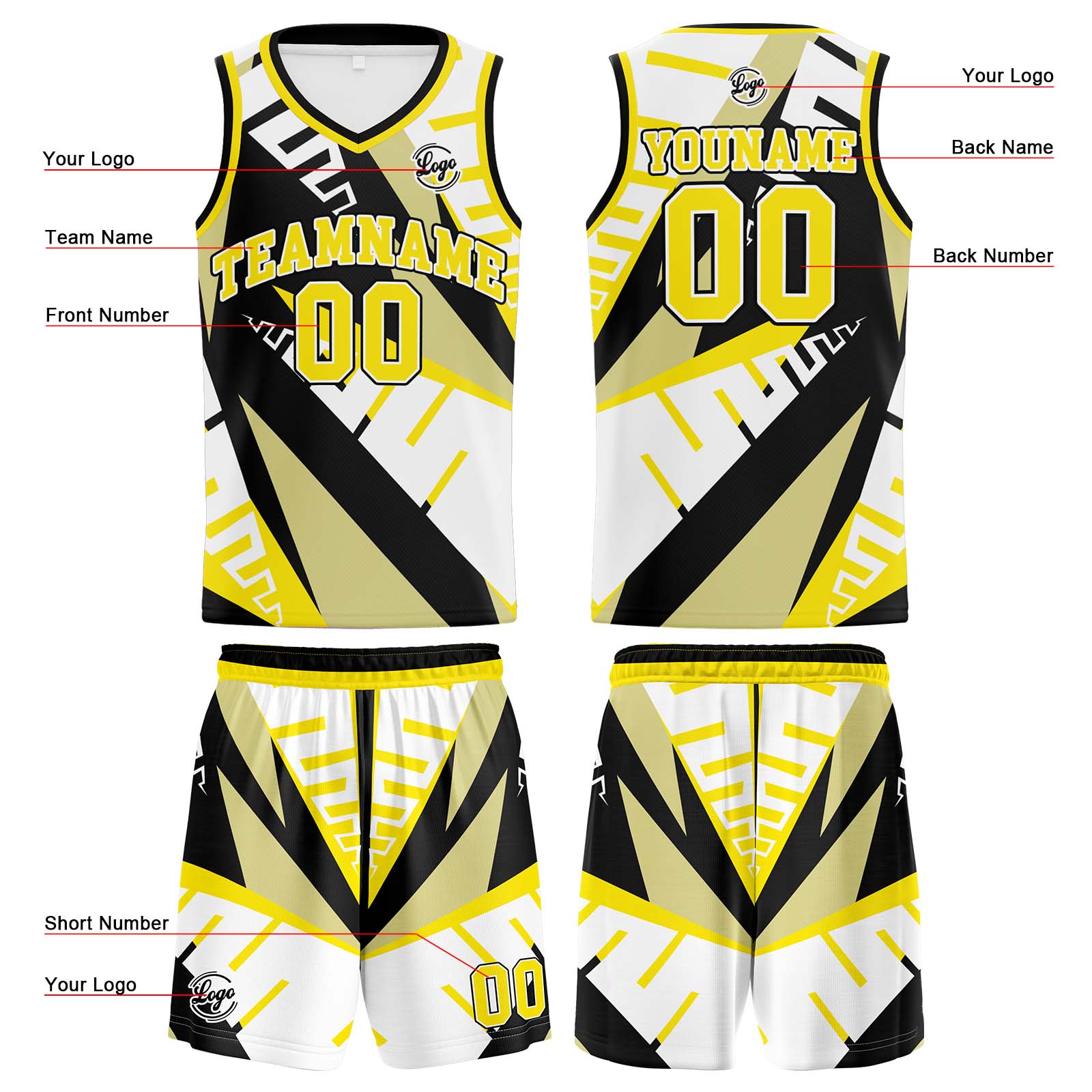 Custom White Black Yellow Basketball Jersey Uniform Suit Printed Your Logo Name Number