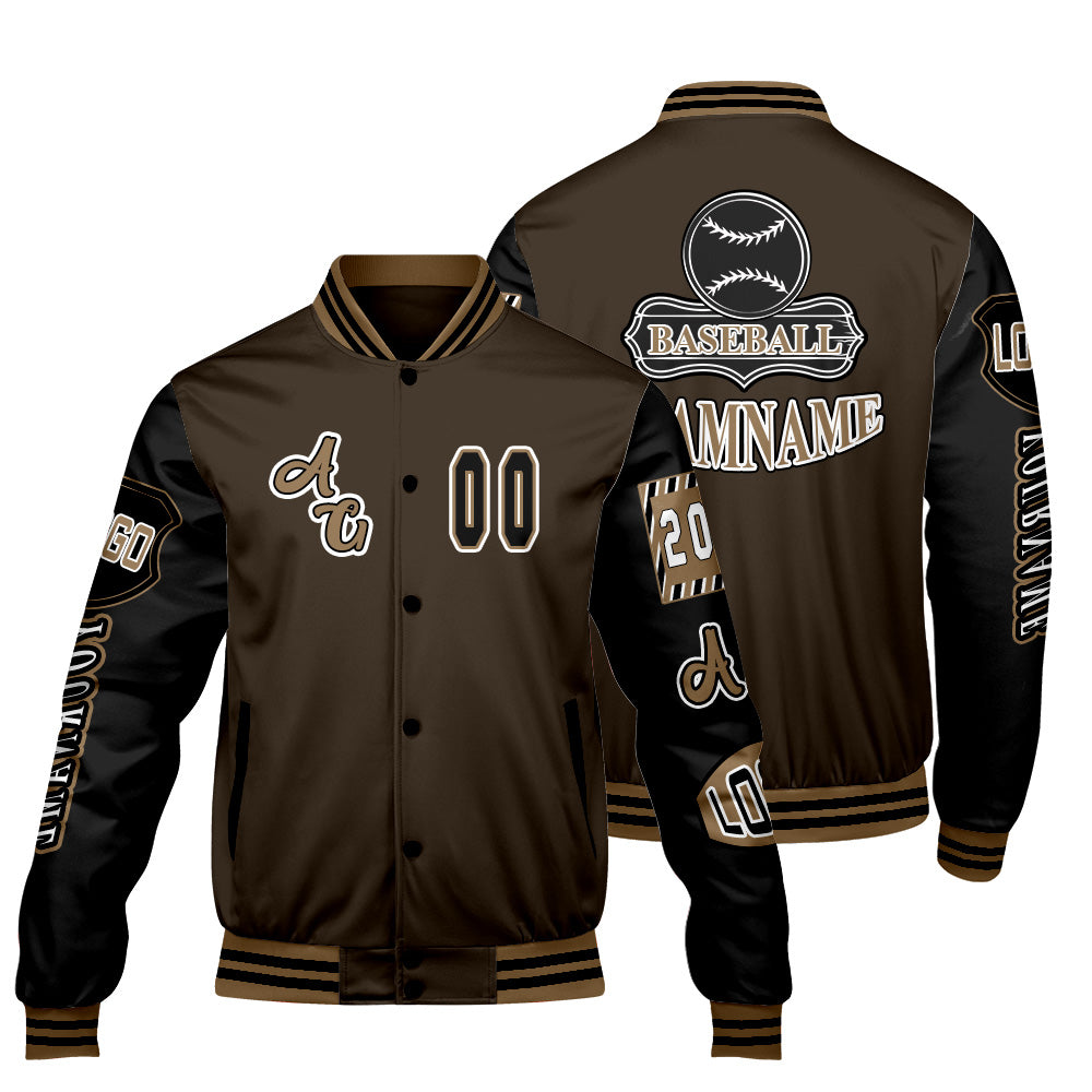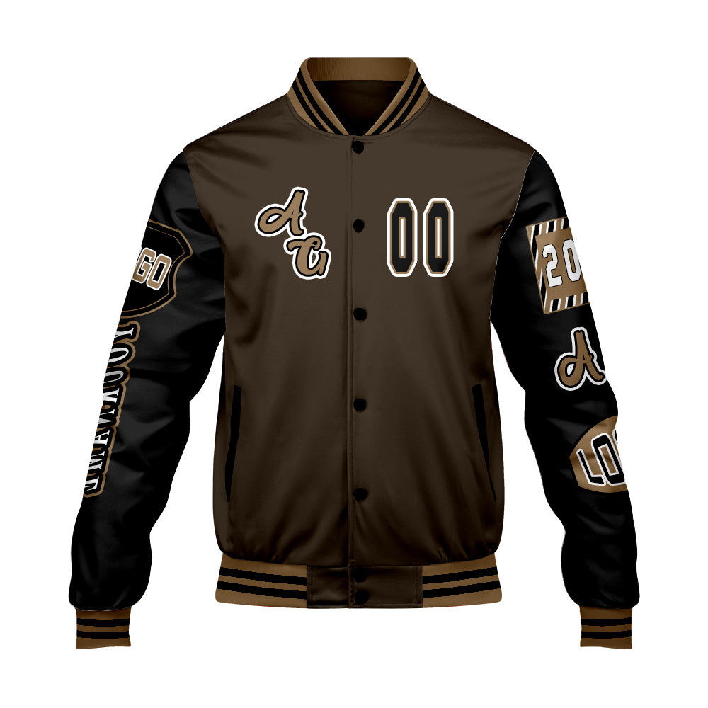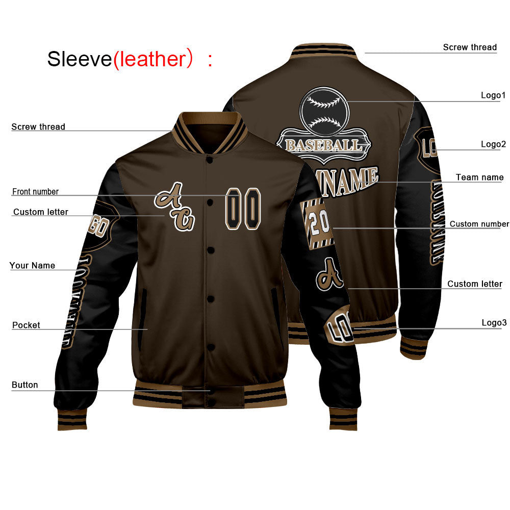 Custom Brown Black Letterman Varsity Jacket Personalized Embroidery Printing
