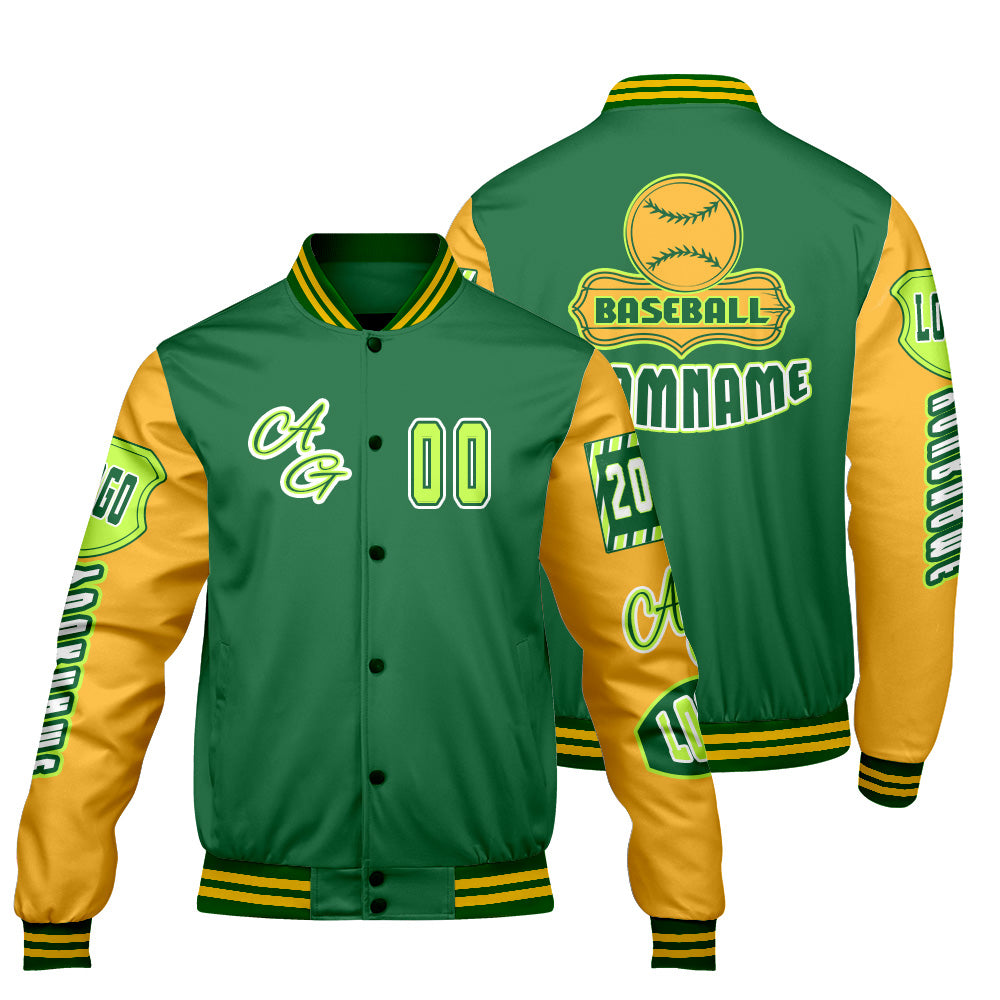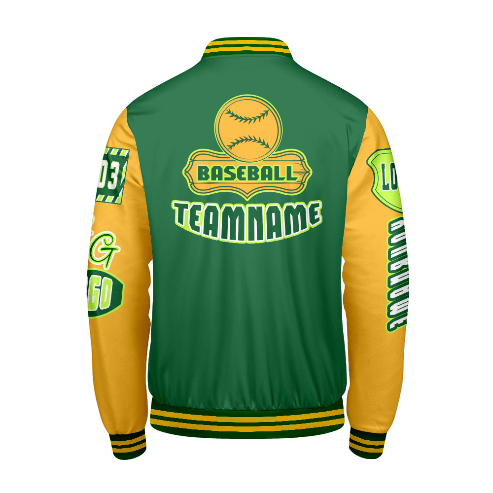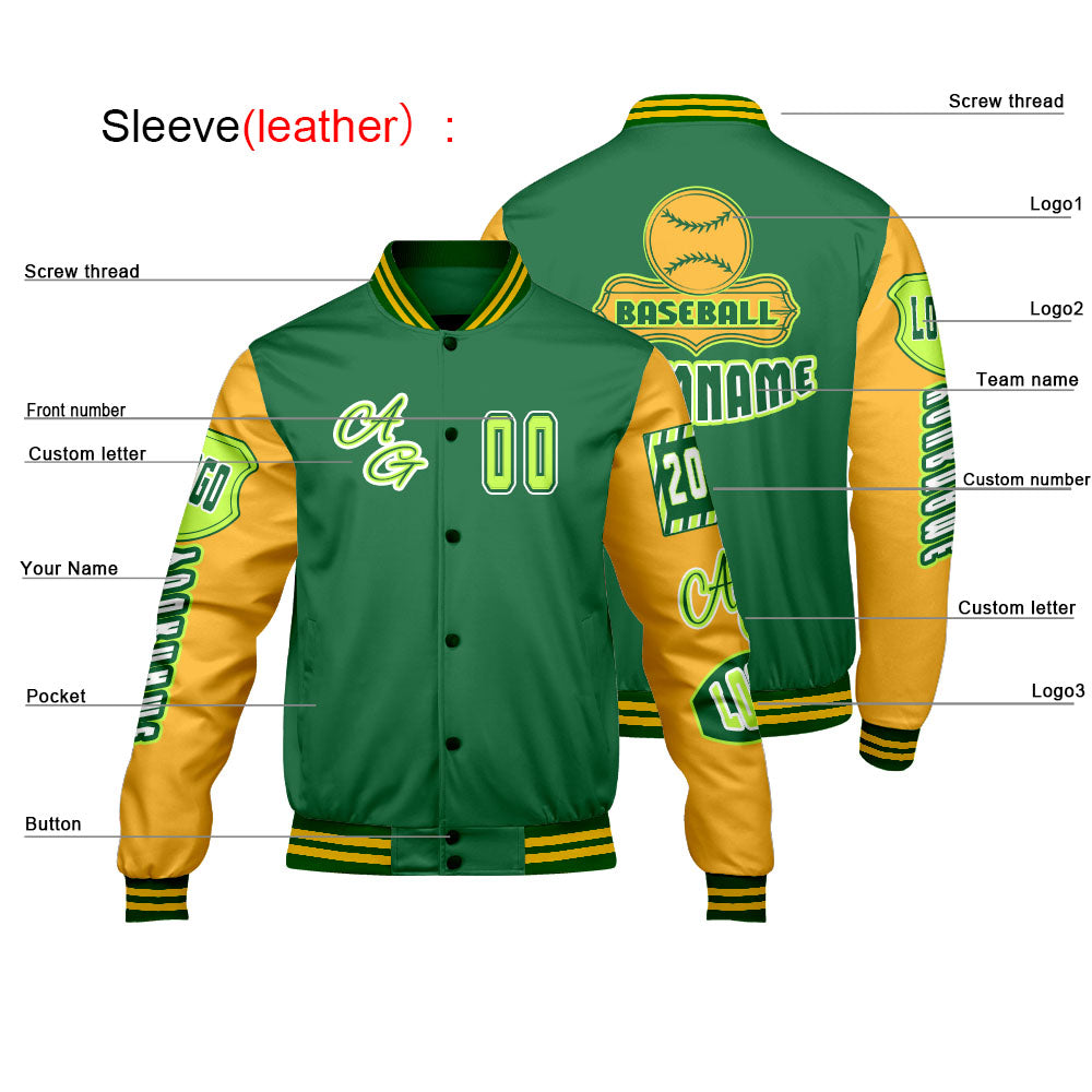 Custom Green Yellow Letterman Varsity Jacket Personalized Embroidery Printing
