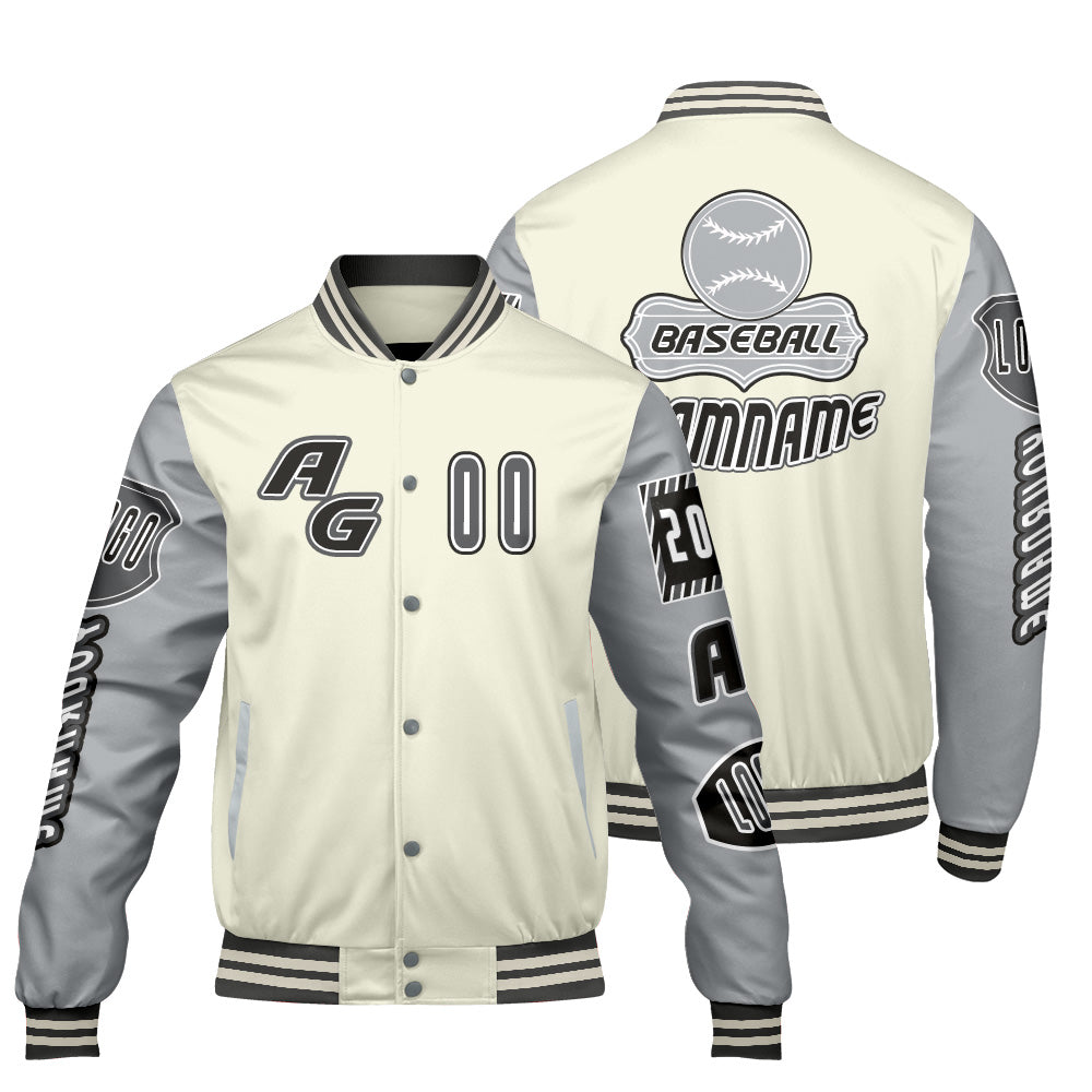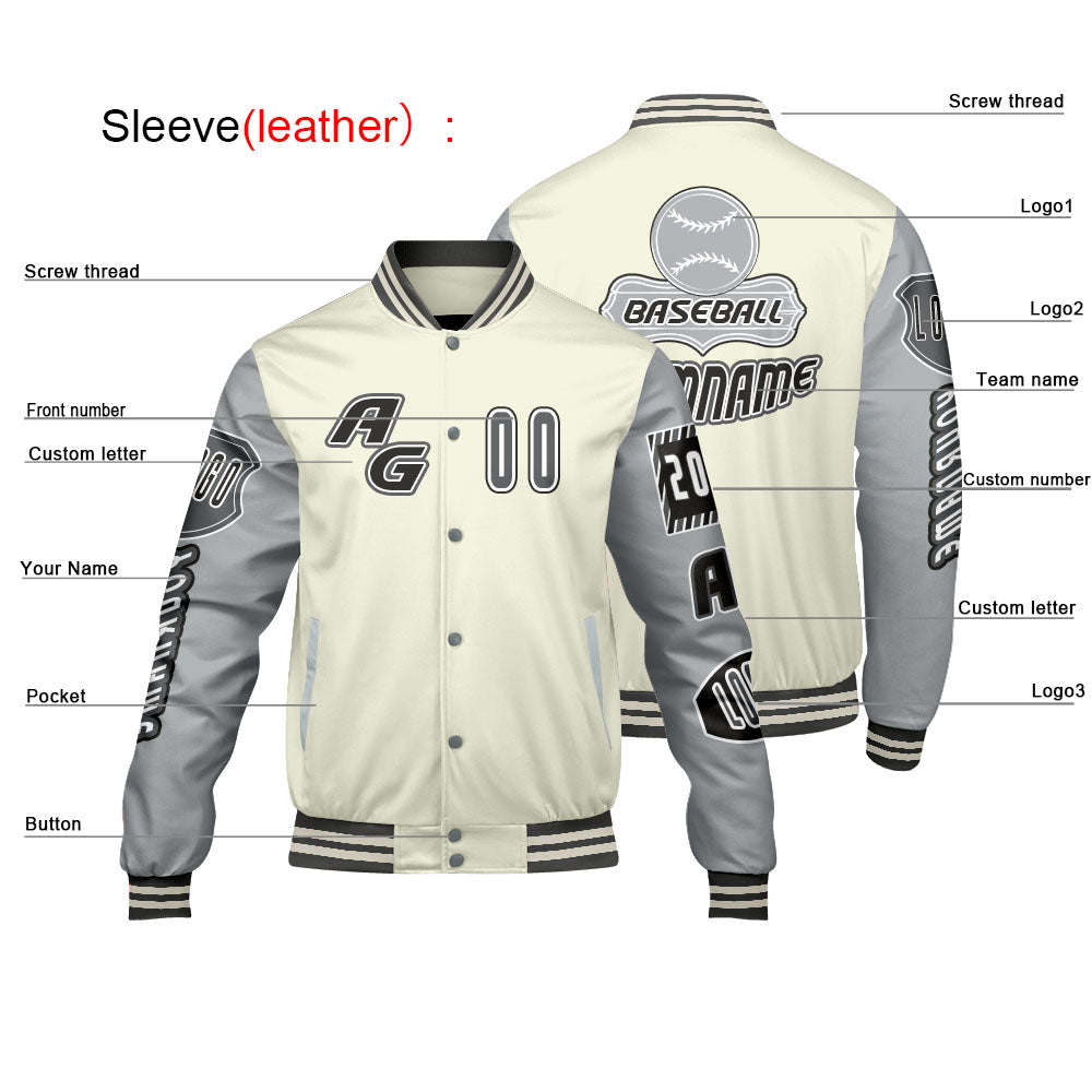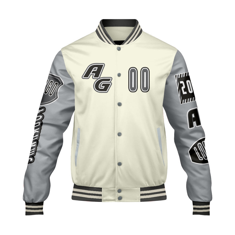 Custom Grey White Letterman Varsity Jacket Personalized Embroidery Printing