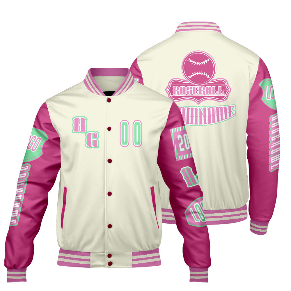 Custom Pink Green Letterman Varsity Jacket Personalized Embroidery Printing