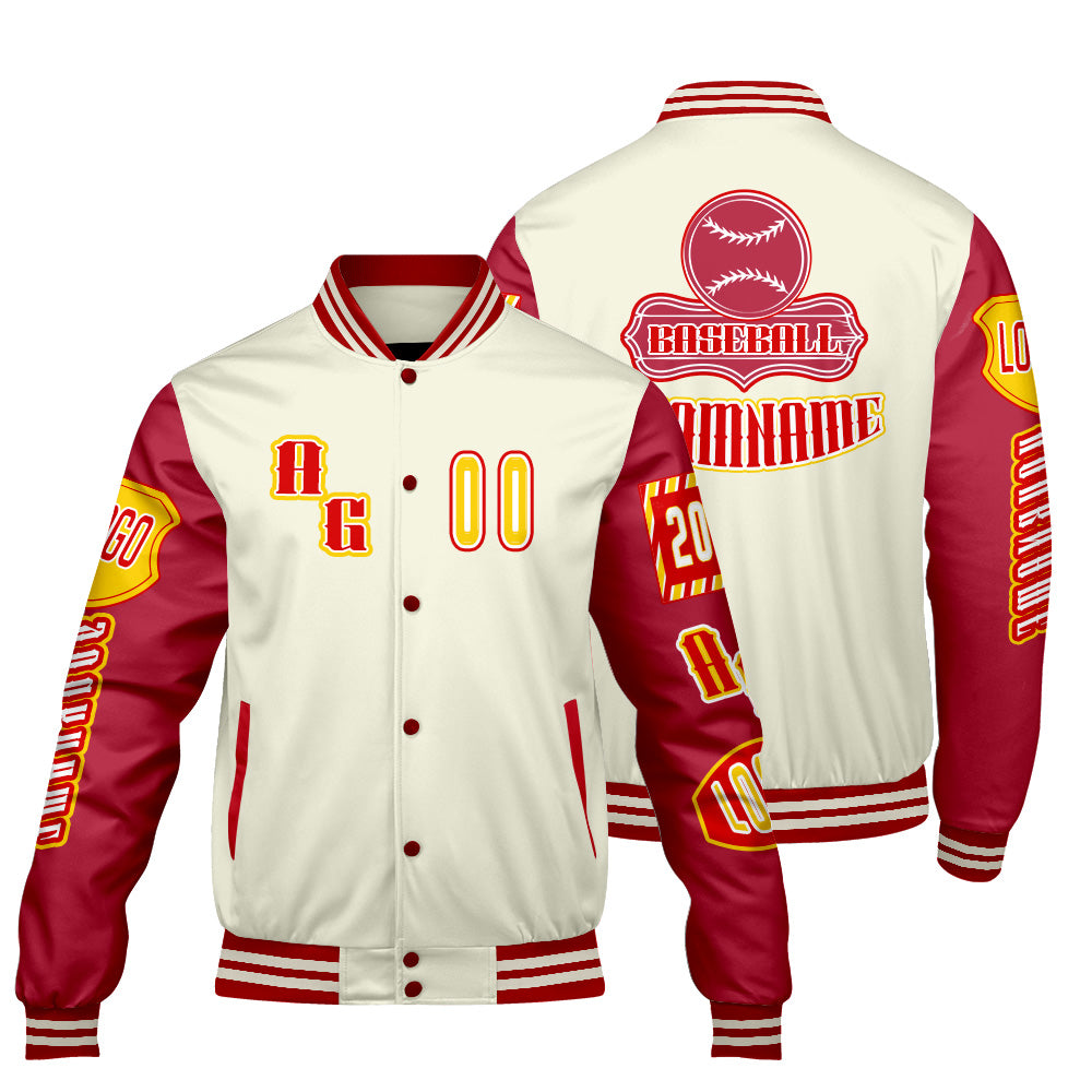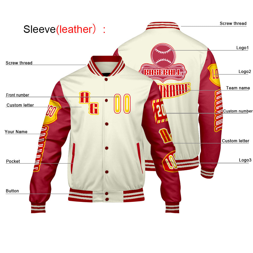 Custom Red Yellow Letterman Varsity Jacket Personalized Embroidery Printing