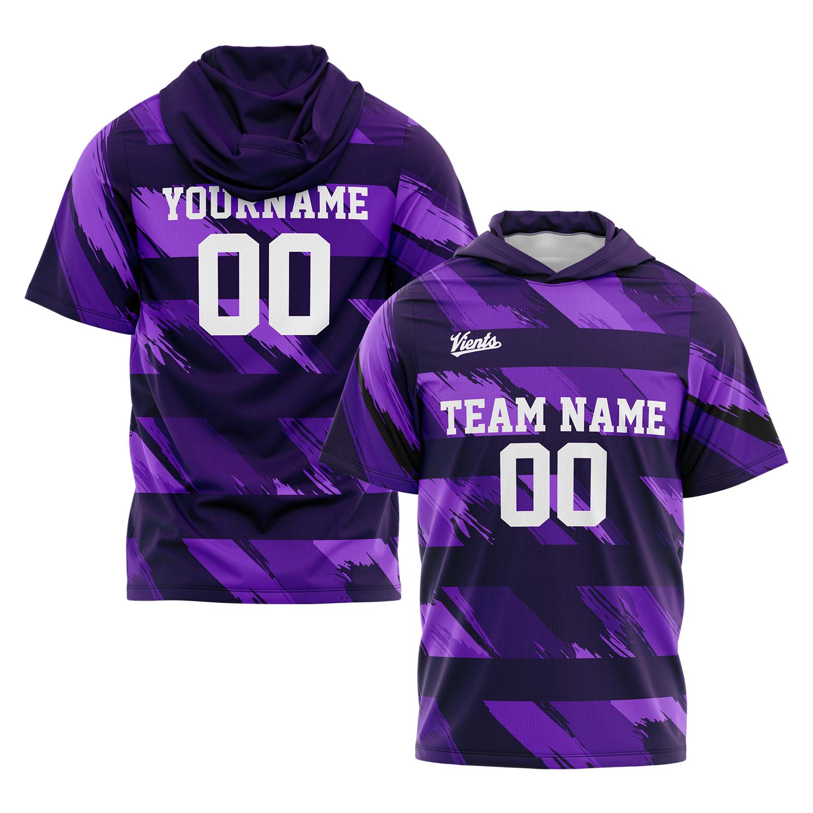 Custom Purple Short Sleeve Hoodies for Men Women Shirts with Hoods Printed Name Logo