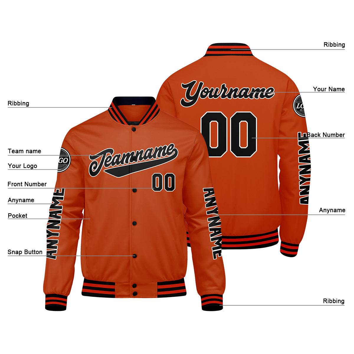 Custom Black Orange Varsity Jackets for Men Women Youth Personalized Letterman Jackets