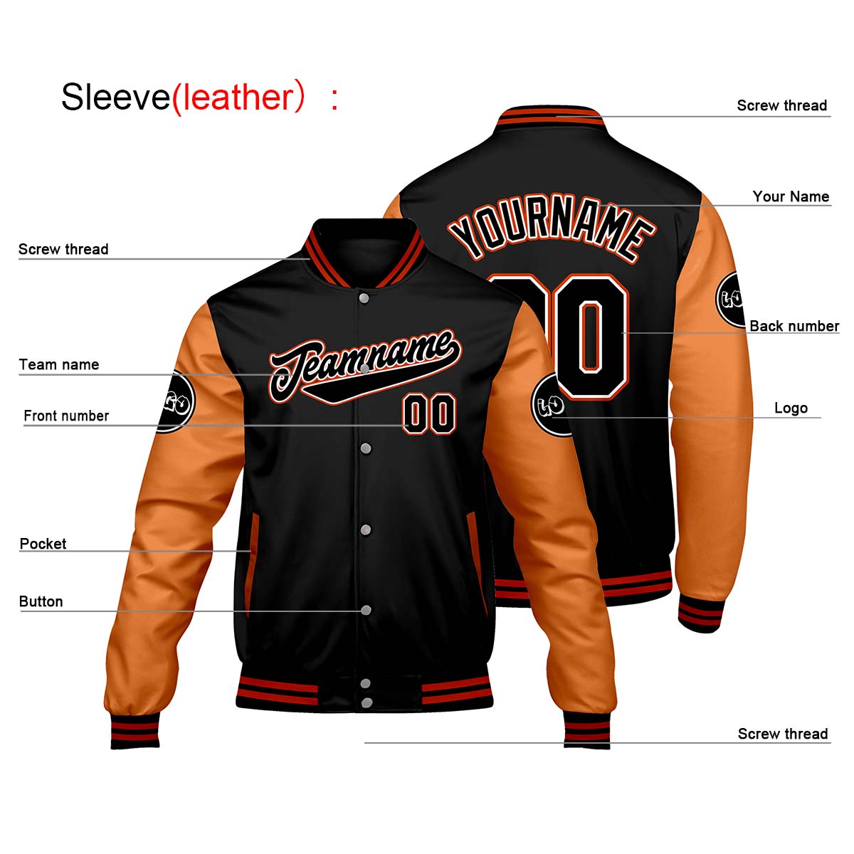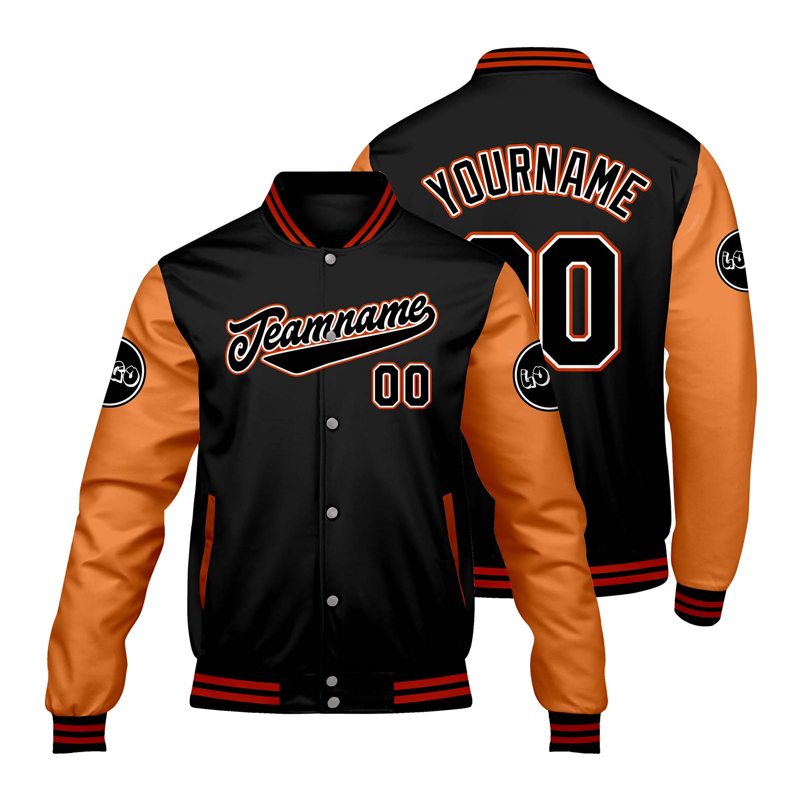 Custom Black Orange Varsity Jackets for Men Women Youth Personalized Letterman Jackets