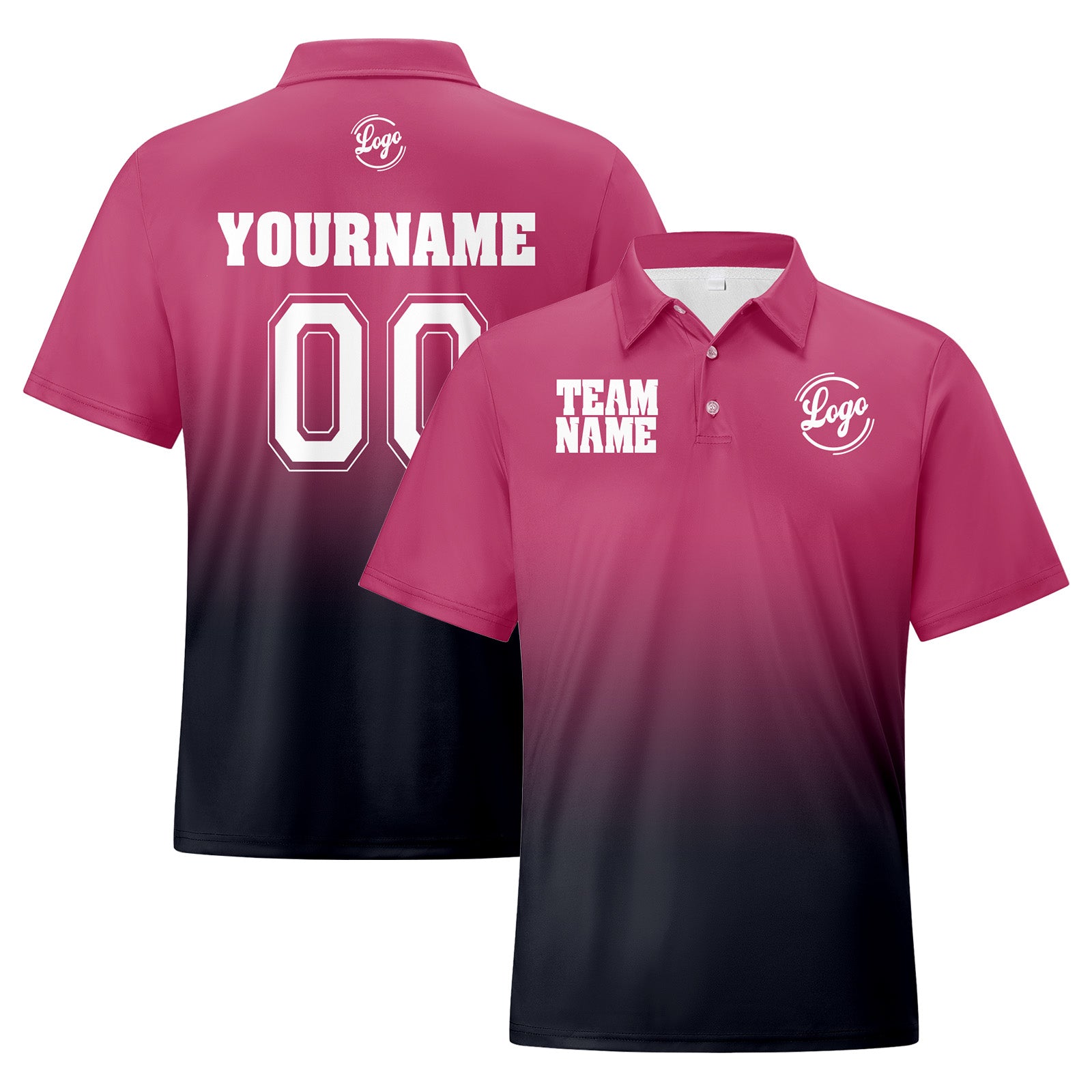 Custom Pink Grey Football Gradient Polo Shirts Add Your Unique Logo/Name/Number