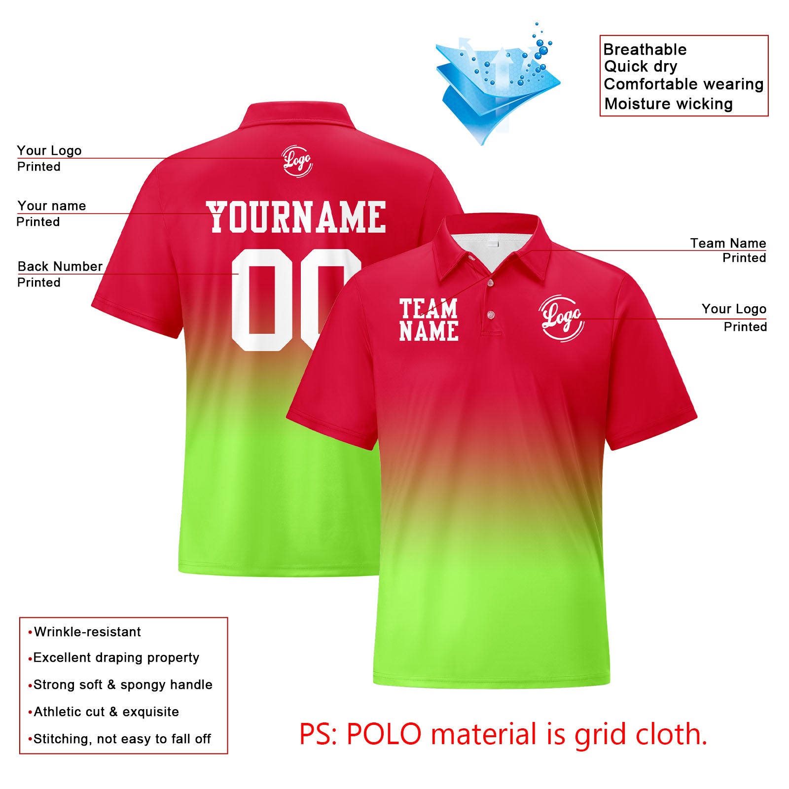 Custom Red Light Green Football Gradient Polo Shirts Add Your Unique Logo/Name/Number
