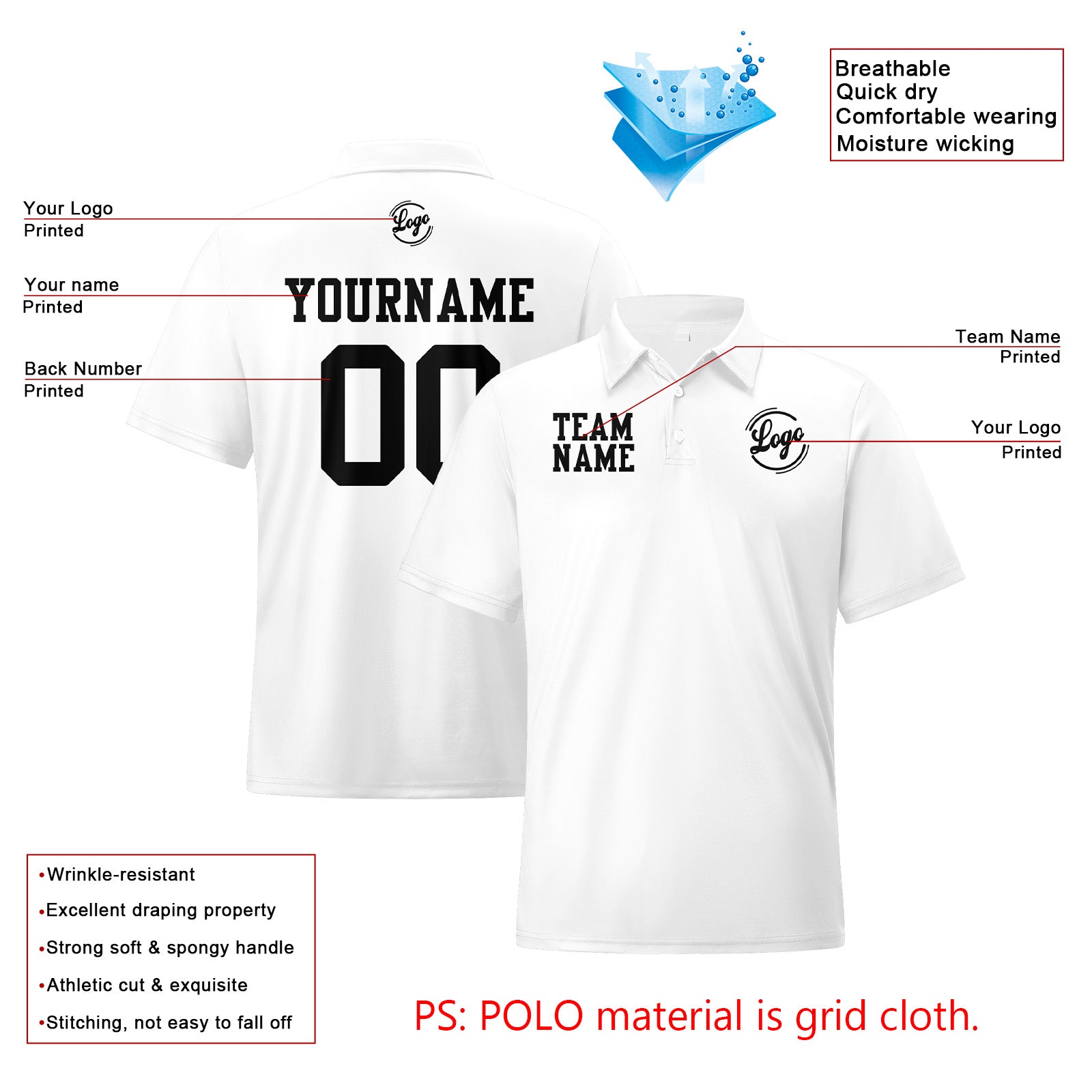 Custom White Black Football Polo Shirts Add Your Unique Logo/Name/Number