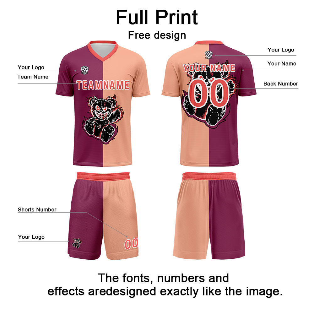 Custom Fuchsia Light Brown Soccer Uniform Jersey Kids Adults Personalized Set Jersey Shirt