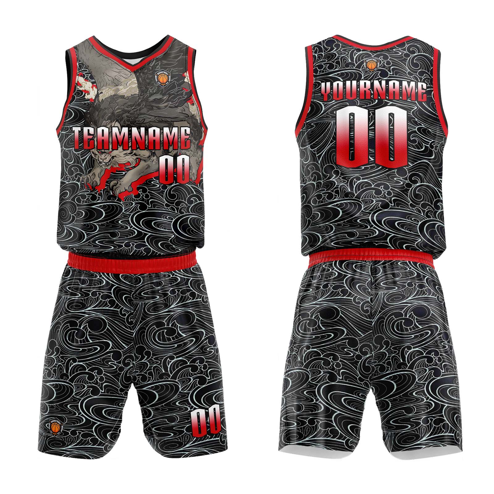 Custom Black Red Basketball Jersey Uniform Suit Printed Your Logo Name Number