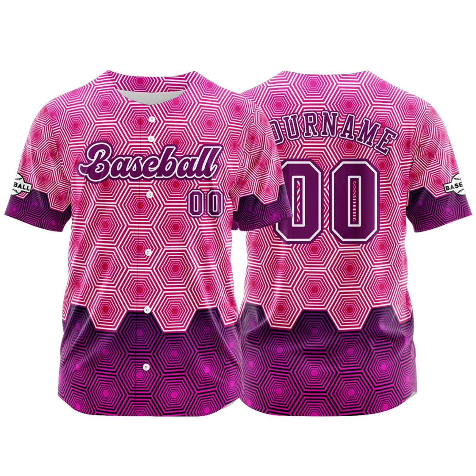 Custom Pink Purple Button Down Baseball Jersey for Men Women Adult Youth Print Name Number Logo
