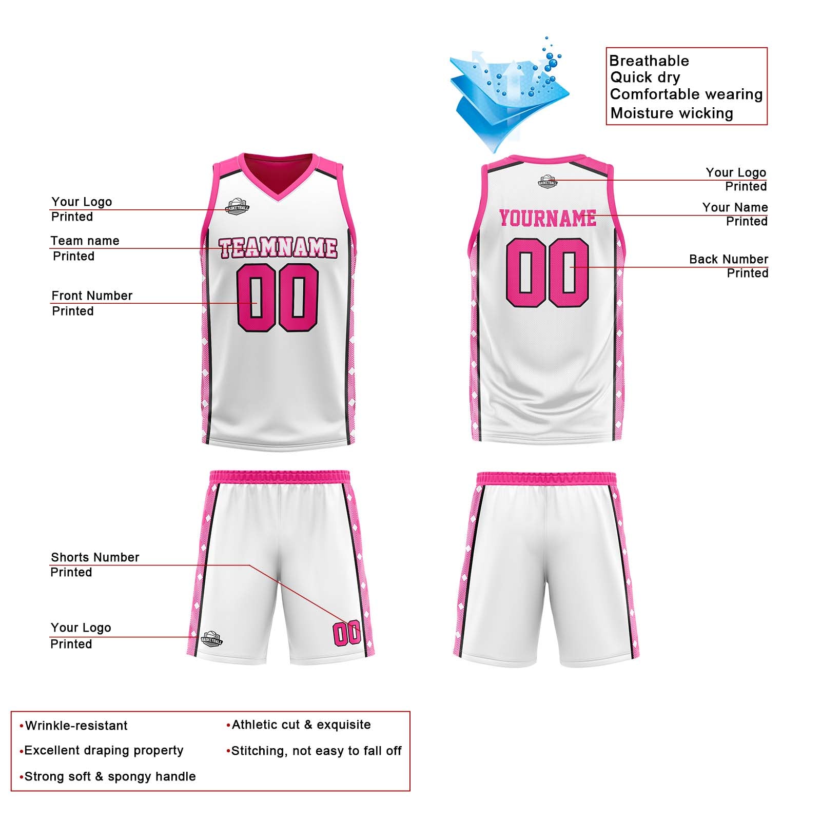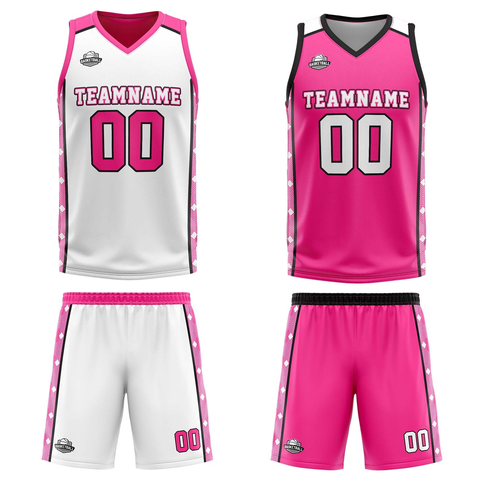 Custom White Pink Reversible Basketball Suit for Adults and Kids Personalized Jersey