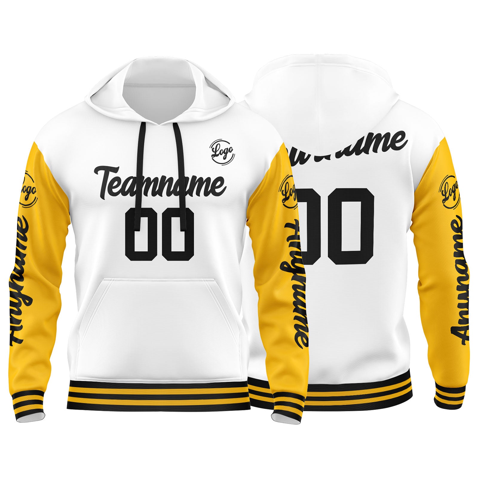 Custom Yellow White Sweatshirt Hoodie For Men Women Girl Boy Print Your Logo Name Number