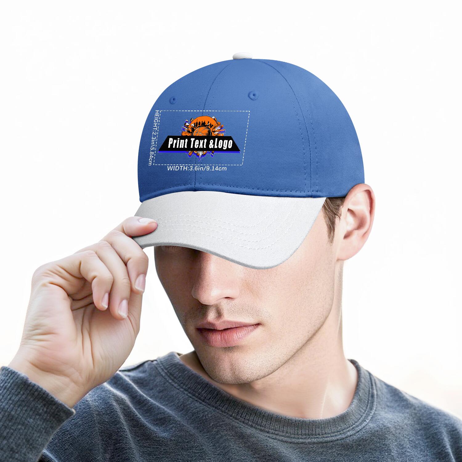 New Custom Blue White Duckbill Cap Design Available with Heat Transfer Printing in Multiple Colors